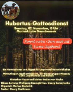 Am Sonntag, den 02. November 2025 findet in der Marienkirche Drennhausen die traditionelle Hubertusmesse statt. Es werden noch Gespanne gesucht, die gemeinsam mit dem Falkner in die Kirche einziehen. Wer Lust hat dabei zu sein, kann sich gern hier in der Geschäftsstelle melden.
